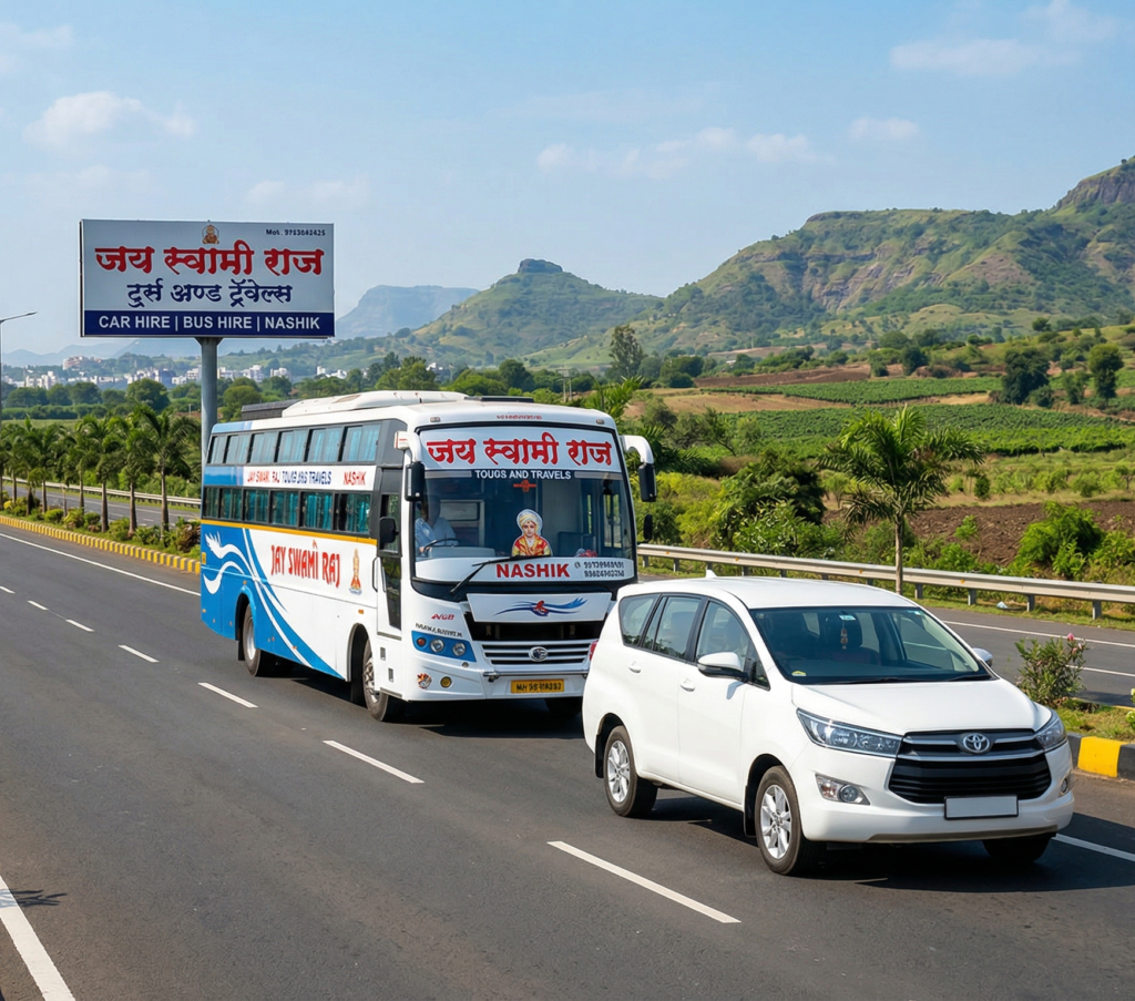With over 29 years of excellence, Jay Swami Raj Tours and Travels has established itself as the premier choice for reliable and comfortable transportation in Nashik. Based in CIDCO, we specialize in providing high-quality car hire and bus rental services tailored to meet the diverse needs of modern travelers, whether for business, pilgrimage, or leisure.